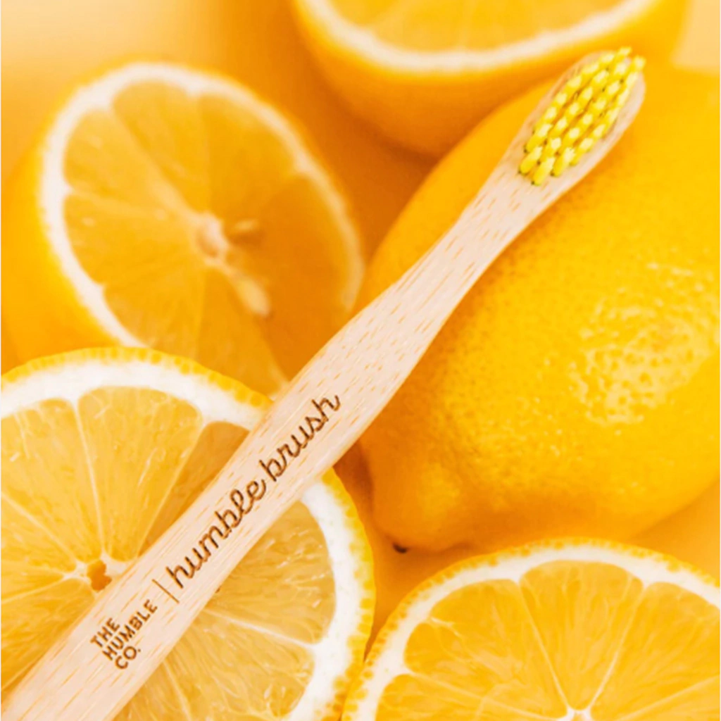 A Escova Infantil da The Humble é composta por cerdas mais delicadas e numerosas do que as versões convencionais. Isso torna o contato com os dentes e a gengiva mais suave.